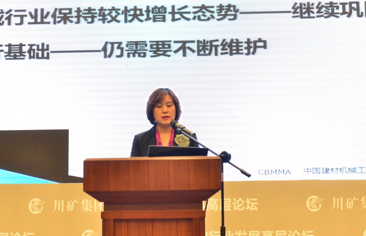 中國(guó)建材機(jī)械工業(yè)協(xié)會(huì)常務(wù)副會(huì)長(zhǎng)、全國(guó)建材裝備標(biāo)準(zhǔn)化技術(shù)委員會(huì)秘書長(zhǎng)王玉敏作題為《建材機(jī)械行業(yè)發(fā)展及轉(zhuǎn)型思考》的演講